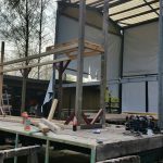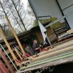 - Meike am ersten Holzgerüst für das Radio