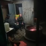 - In der Kälte am Spießbratengrill